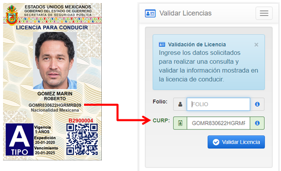 El RFC ó CURP en esta versión de la Licencia se ubica bajo el nombre del conductor, tambien puede realizar la consulta ingresando los primeros 10 caracteres (RFC sin homoclave).