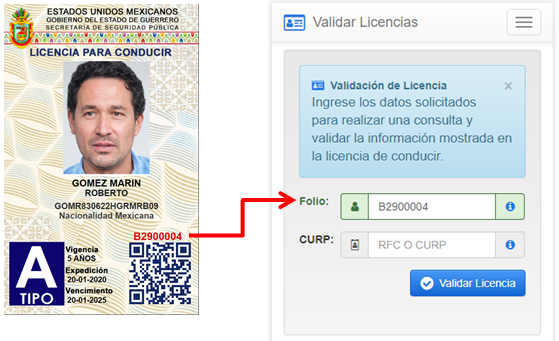El Número de Folio en esta versión de la Licencia se ubica sobre el código QR.